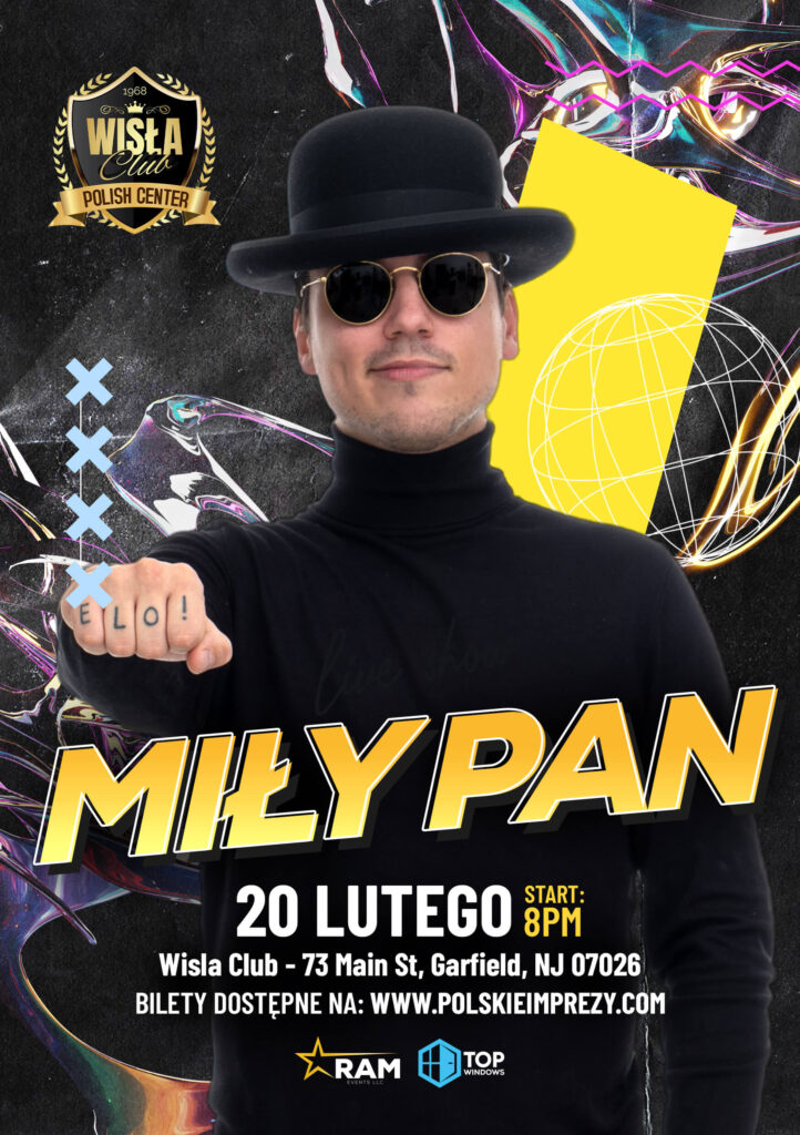 Już 20 lutego zapraszamy cała Polonię do Wisła Club w Garfield (New Jersey), gdzie wystąpi MIŁY PAN! Ta noc upłynie pod znakiem świetnej zabawy w rytm takich przebojów jak “Jeszcze raz”, “Małolatki” czy “Królowa”. Kup bilet online już teraz!
